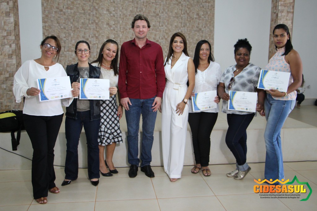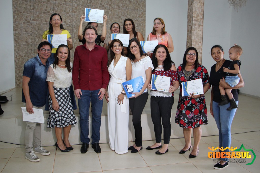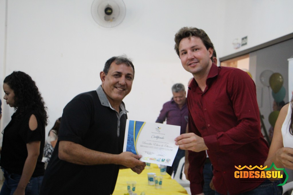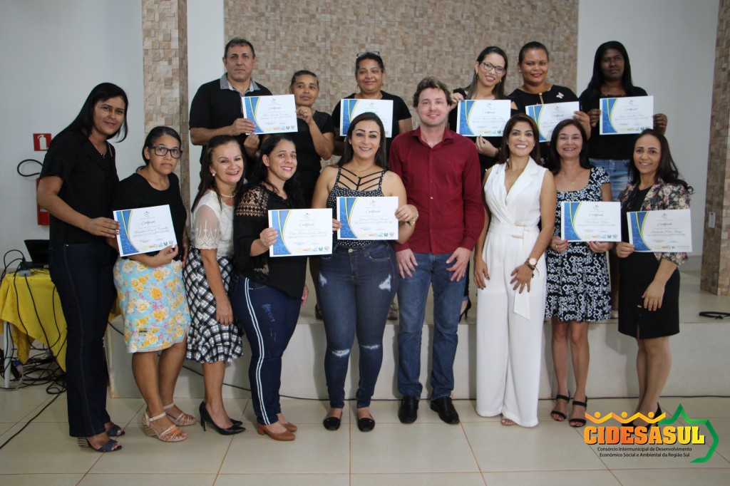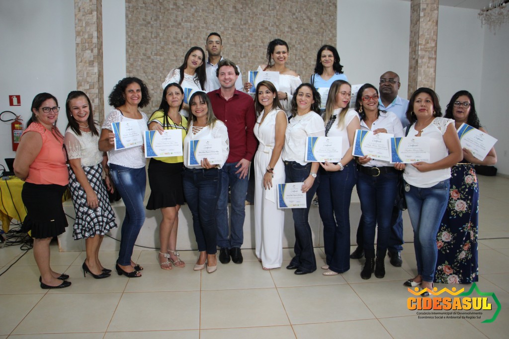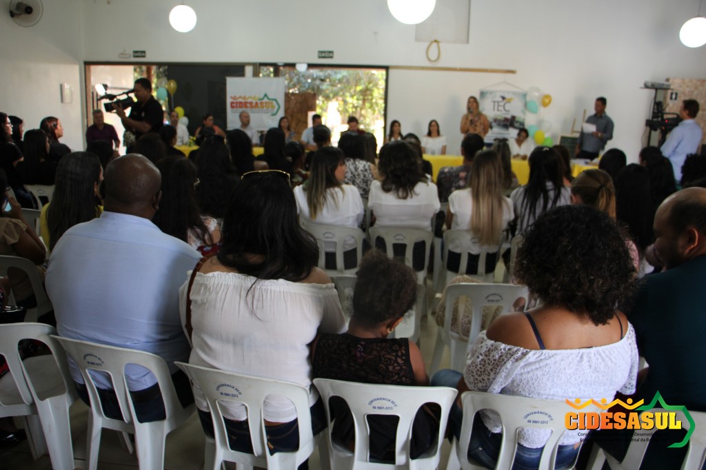 Cerimônia de entrega de certificados do Curso de Formação Continuada, aos alunos que participaram de vários cursos ofertados nos municípios associados, em parceria com o Cidesasul e TEC Cursos.